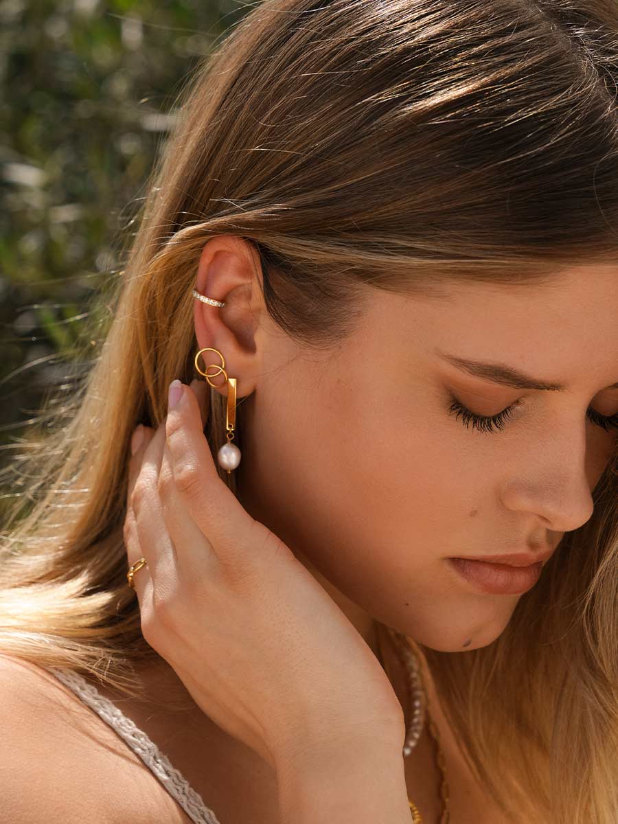 Ontdek de Clear Shine EarCuff — een verfijnde earcuff van 18-karaats verguld roestvrij staal, subtiel bezet met zirconia-steentjes. Hij is licht (slechts 1 gram), waterbestendig en hypoallergeen — perfect om hem dagelijks te dragen zonder zorgen.
