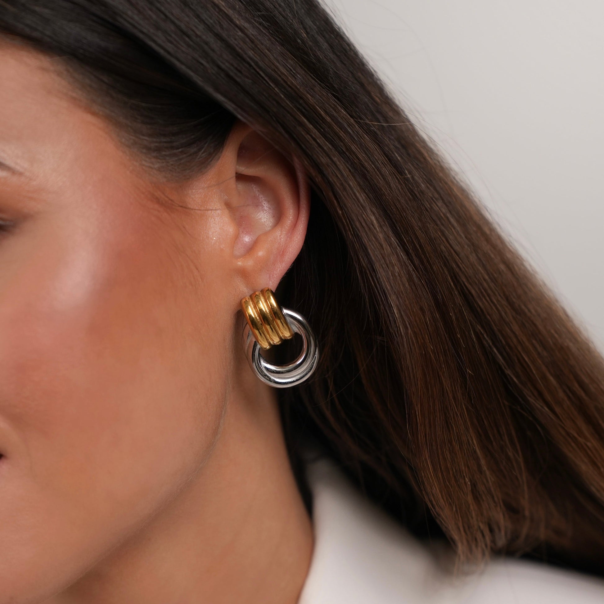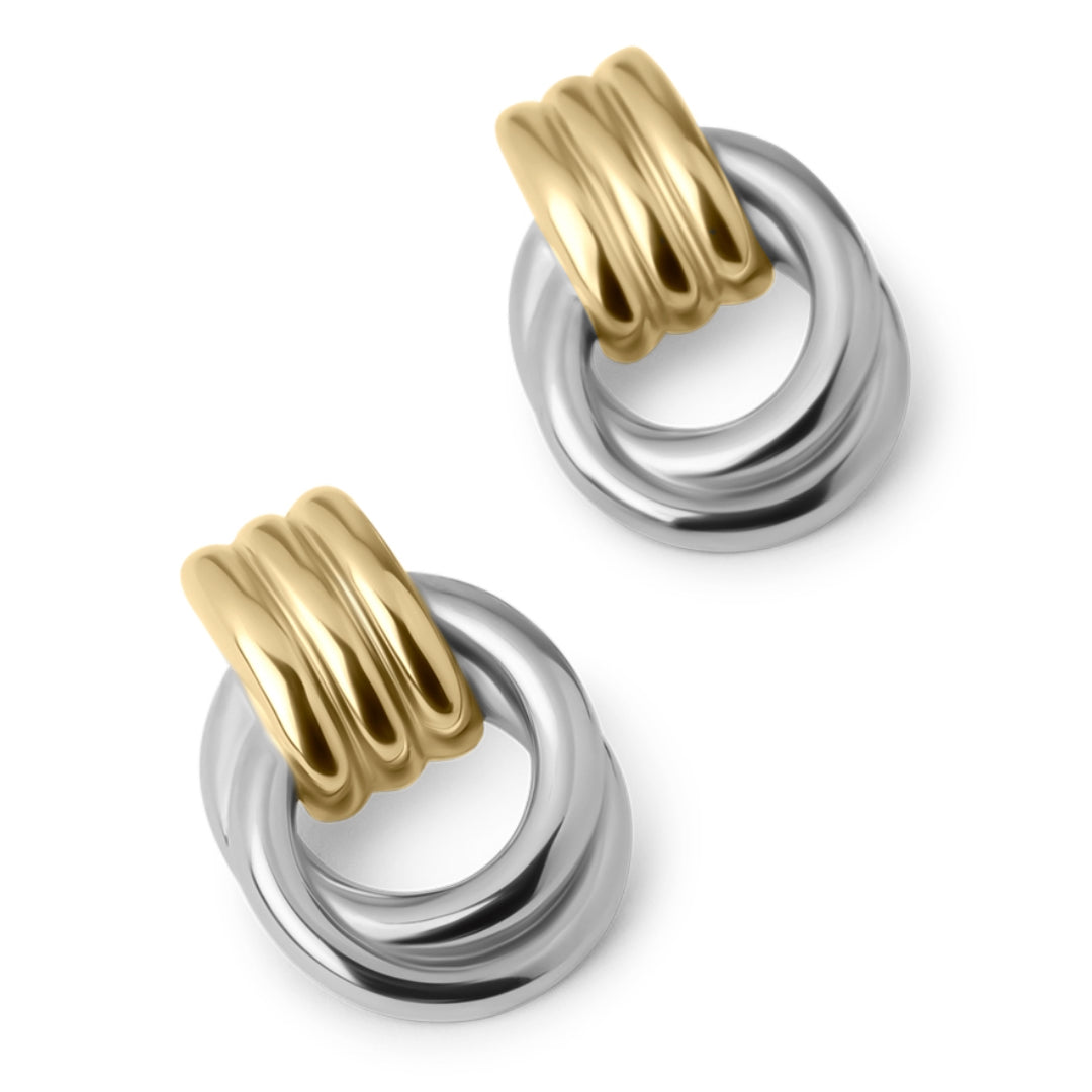 Gemaakt van water- en verkleurbestendig roestvrij staal met een warme gouden en zilveren afwerking, zijn ze ontworpen voor comfortabel dagelijks dragen zonder gedoe. Draag ze solo voor een ingetogen touch of combineer met andere oorbellen voor een persoonlijke, gelaagde stijl — tijdloos, stijlvol en vol karakter.