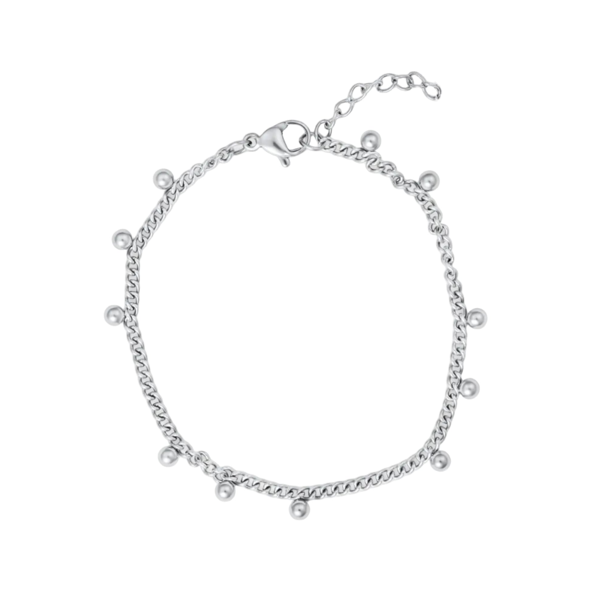 Ontdek de Dots Grace Armband — een elegante armband met verfijnde bol-accentjes die het licht op een zachte manier vangen en je look een speels, doch ingetogen detail geven. Gemaakt van water- en verkleurbestendig roestvrij staal met een warme gouden afwerking, ontworpen om comfortabel de hele dag te dragen.