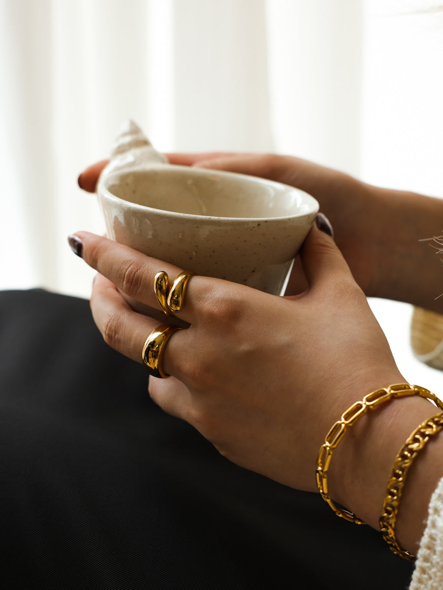 Ontdek de Fateful Encounter Ring — een krachtige ring van roestvrij staal met een breedte van circa 13 mm, verguld in 18k geel-, rosé- of zilverkleur. Hij is verstelbaar, waterdicht en hypoallergeen, ontworpen om moeiteloos met je mee te gaan.