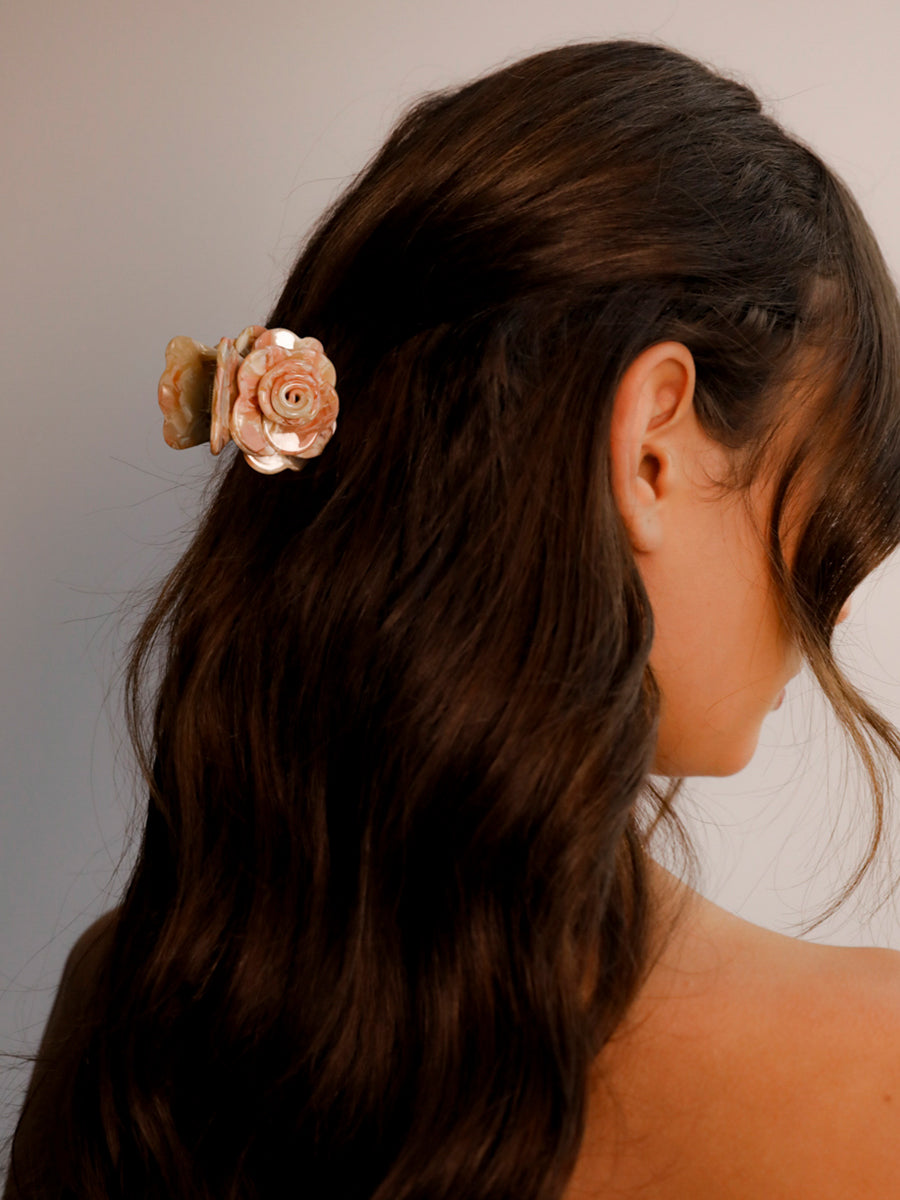 Ontdek de Bloemenweelde Clip — een haarklem van 4,5 cm, gemaakt uit biologisch afbreekbaar bio-acetaat dat sterk én duurzaam is.