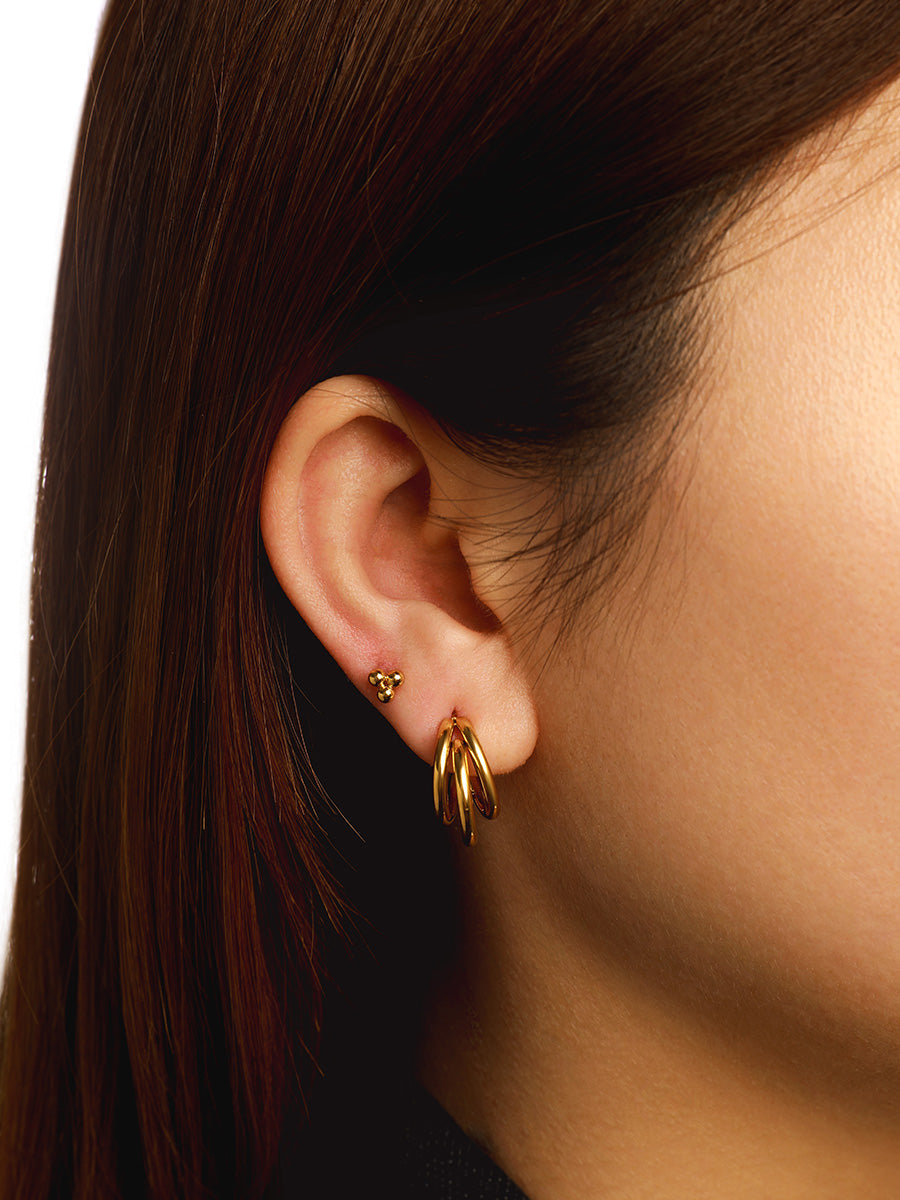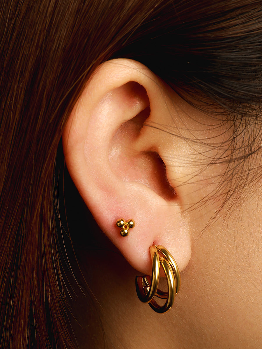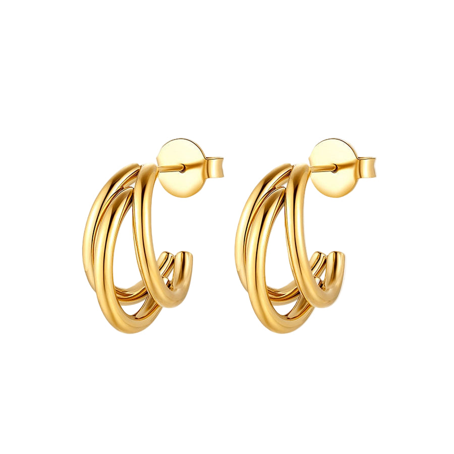 Ontdek de Trio Drop Hoops — fijne oorbellen waarin drie hangende schakels speels samenvloeien en een subtiel ritme creëren rond je oor. Gemaakt van 18 k verguld roestvrij staal, volledig water-en allergievriendelijk, ontworpen voor dagelijks draag-comfort.