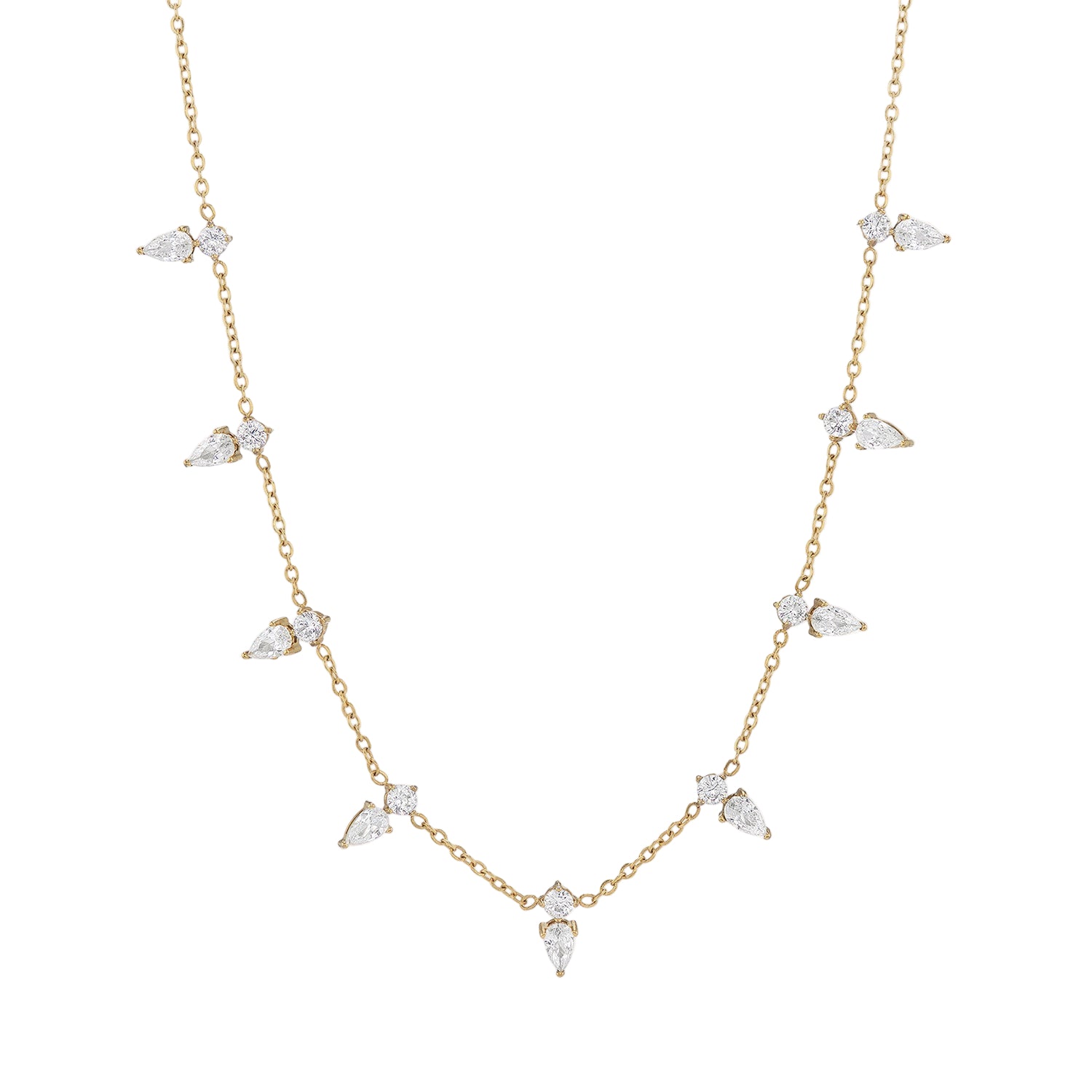 De ketting is voorzien van subtiele cluster-zettingen van handgeslepen cubic zirconia-steentjes, verspreid over de schakels als kleine sterren aan de nachtelijke hemel. Met een verstelbare lengte van 37 tot 47 cm (5 verstelbare posities) valt hij elegant rond je hals — perfect solo gedragen voor een subtiele glans, of layer met andere kettingen voor een gelaagde, persoonlijke look.