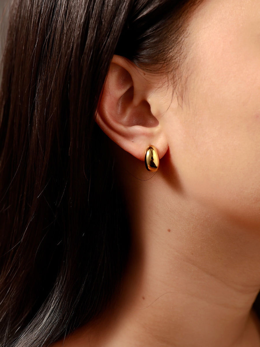 Ontdek de Bean Echo Oorbellen — een subtiel spel van vorm en eenvoud. Het gladde, boogvormige ontwerp herinnert aan organische lijnen en geeft een lichte contour rondom je oor zonder opdringerig te zijn. Gemaakt van hoogwaardig roestvrij staal met een 18 k vergulde afwerking, waterbestendig en hypoallergeen — ontworpen om dagelijks gedragen te worden.