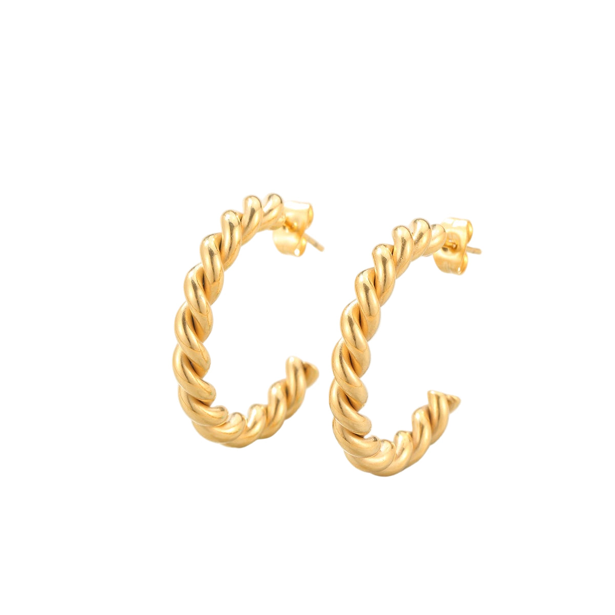 Ontdek de TwistLux Hoop — een paar oorringen waarin klassieke vormen en subtiele textuur samenkomen. De schakel is elegant getwist, wat zorgt voor een lichtspel en karakter zonder te schreeuwen. Gemaakt van 18 k goud-geplateerd roestvrij staal, hypoallergeen en bestand tegen dagelijks gebruik.